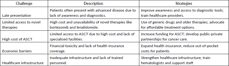 Table 2. Key challenges and strategies for MM treatment in low-resource settings.