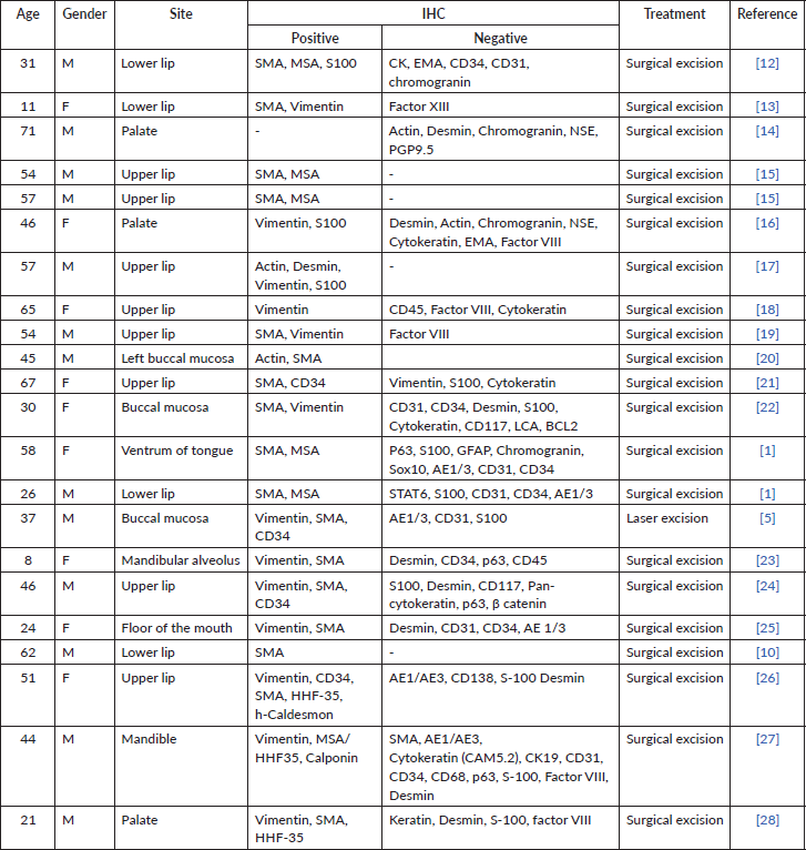 Table 1. Intraoral glomus tumours diagnosed with histopathology in conjunction with immunohistochemistry.