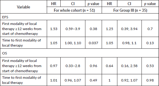 Table 6. Univariate analysis- EFS and OS for whole cohort and Group III by time to local therapy.