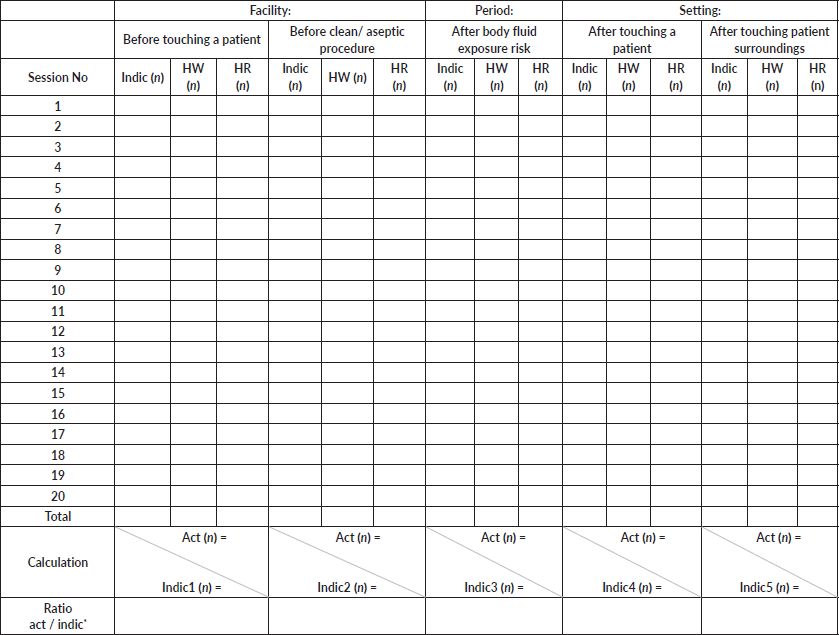 Observation Form – Optional Calculation Form (Indication-related compliance with hand hygiene)