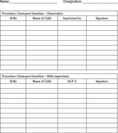 Annexure 5. Chemoport insertion hands-on training log sheet.