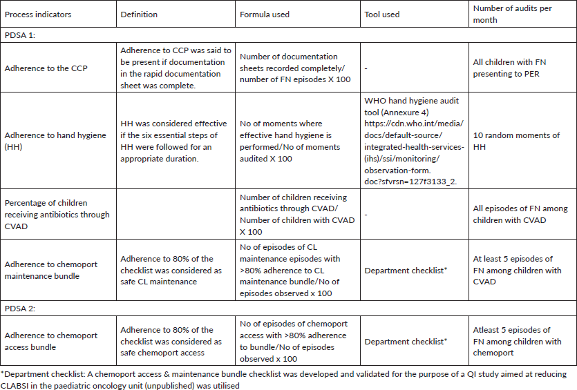 The assessment of processes developed in PDSA 1 & 2 was done using process indicators (Annexures 4 and 6) that were identified and defined at the start of the intervention period and measured after interventions were carried out.