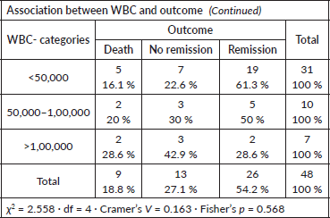 WBC count at presentation versus outcome