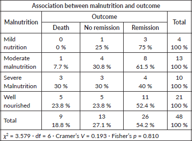 - Severe malnutrition was present in 23.2% of patients, but this did not significantly influence induction outcome.