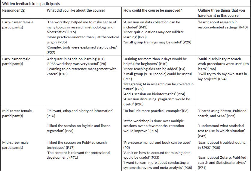 Table 1. Written feedback from participants after completion of the course.