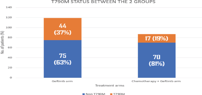 Figure 2. Histogram showing comparison of T790M in geftinib versus geftinib + chemotherapy arms.