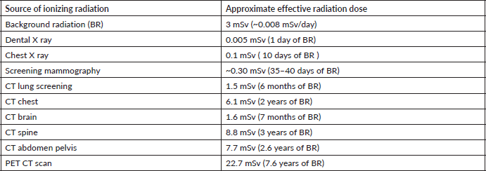 Table 1. Ionizing radiation and approximate effective radiation dose [21].