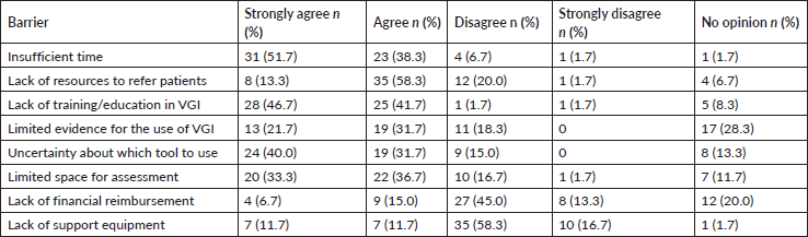 Table 5. Perceived barriers to implementing VGI in clinical practice (n = 60).