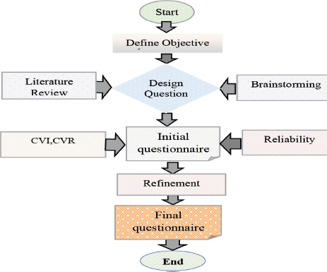 Figure 1. Methodological framework for questionnaire development and validation. Figure methodological framework for developing the questionnaire, including stages of literature review, focus group discussions, initial draft preparation, content validity assessment and reliability testing.