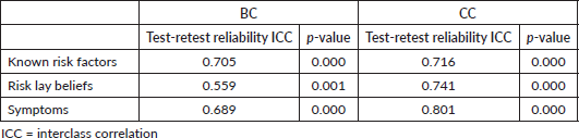 Table 3. Test-retest reliability for breast and CCs knowledge domains (No. 32 participants).