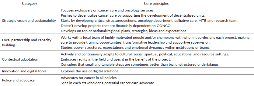 Table 1. GONCO core principles of work to support the co-development of decentralised oncology units in LMICs.