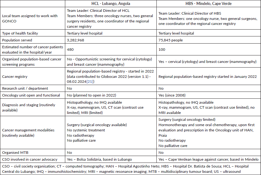 Table 2. Summary of cancer care services availability in Lubango, Angola, and in Mindelo, Cape Verde, per GONCO assessment in 2022.