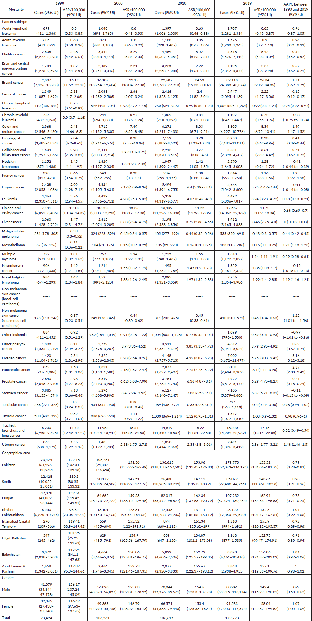 Table 1. Pakistan’s cancer incidence trends by type, gender and province (1990–2019).