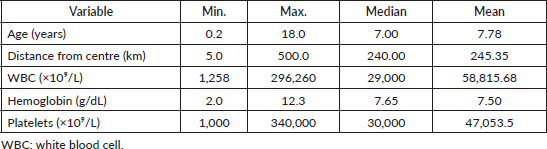 Conclusion: Demographic variables, nutritional status, WBC count and clinical presentations were not associated with induction outcomes, possibly due to the availability of extensive supportive care services such as accommodation near the hospital, free food and treatment and psychosocial support in the paediatric oncology unit. In contrast, ELN risk categories were strongly associated with outcomes.