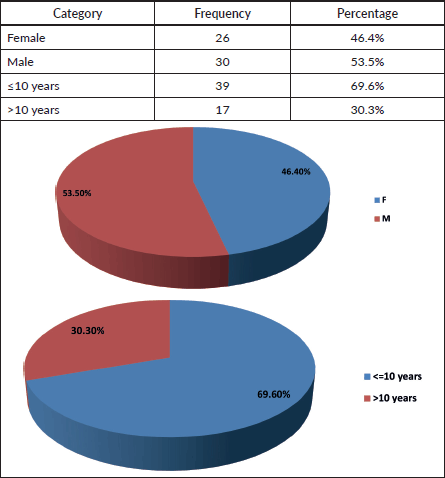 Results: Among 56 patients analyzed, the male-to-female ratio was 1.15. The median age was 7 years (range: 0.2–18 years). The white blood cell (WBC) count at presentation ranged from 1,250/μL to 296,000/μL (median: 29,000/μL). Sixty percent of patients were malnourished, and the majority belonged to lower socioeconomic strata. Fever was the most common presenting symptom (93%), followed by bleeding (61%), easy fatigability (53%), bone pain (46%), hepatosplenomegaly (39%) and lymphadenopathy (14%). According to European LeukaemiaNet (ELN) 2017 risk stratification, 52% of patients were categorized as favourable risk, 18% as intermediate risk and 28% as high risk; one patient could not be risk-stratified. Remission was achieved in 47% of patients, 23% did not achieve remission, 16% died during induction and 14% abandoned treatment.
