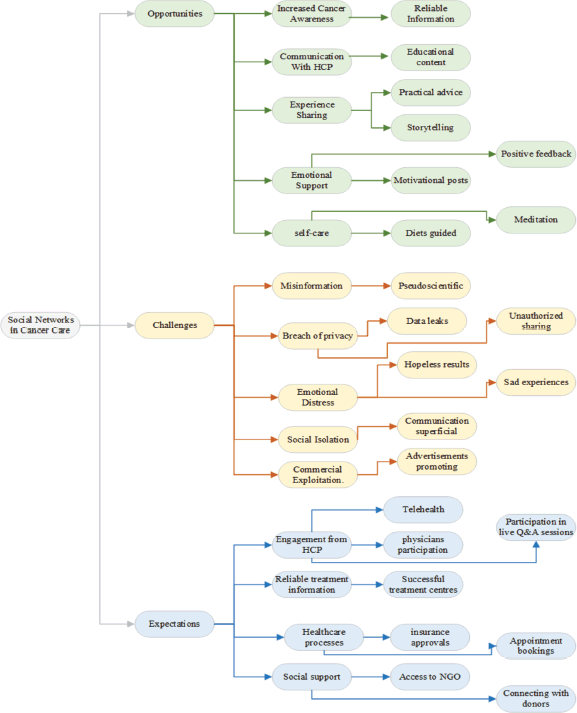 Despite the potential benefits of SNs, participants identified several concerns regarding their use in cancer care. While some patients found reliable information and emotional support, others were burdened by conflicting narratives and serious risks. Thematic analysis revealed several key sub-themes: misinformation and low-quality content, emotional and psychological distress, privacy and ethical risks, social isolation and commercial exploitation.