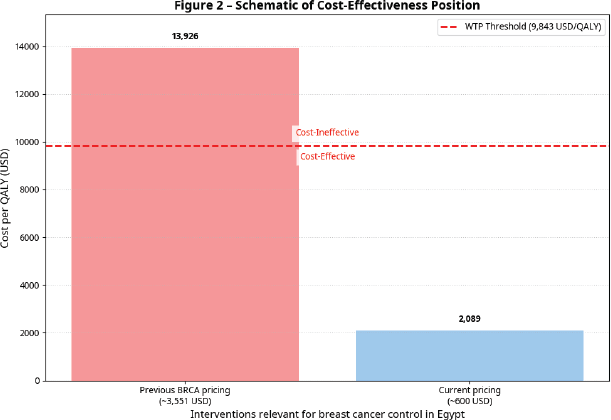 From a health system perspective, the initial budgetary impact of introducing genetic profiling is offset by its long-term economic and public health benefits. Egyptian women are frequently diagnosed at younger ages and with more advanced disease, leading to poorer outcomes and higher treatment costs. Genetic profiling enables the early identification of individuals at high hereditary risk, supporting targeted prevention strategies, intensified surveillance, and cascade testing among relatives. These approaches have the potential to avert costly late-stage treatments, improve survival, and generate substantial downstream cost savings.